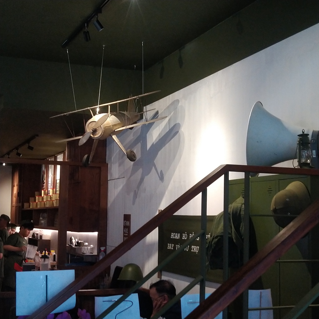 咖啡廳裡的佈置採取越南社會主義共和國的軍事文物風,還挺有特色的,非常適合拍照留念。